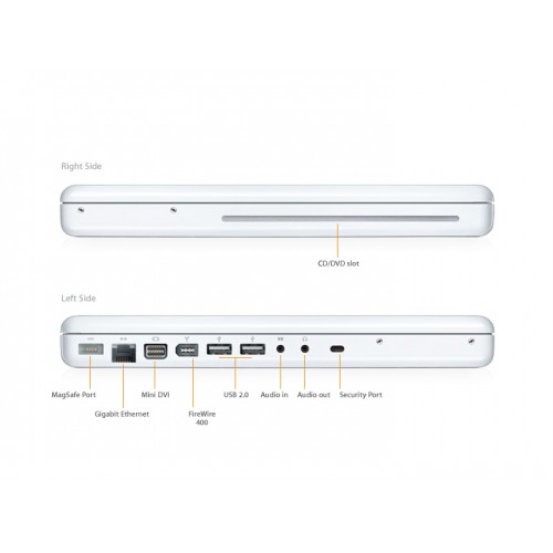 The new MacBook now comes with 1GB of memory standard and larger hard drives for the entire line perfect for running more of your favorite applications and storing growing media collections.